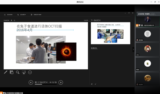 报告中,李嘉男重点强调”医工交叉协同创新”的理念,并详细解释了什么是医工交叉,以及如何做到协同创新。期间,李嘉男带来了自己公司产品进行现场演示,并就产品参数的对比进一步说明OCT成像技术更加智能的科研功能。