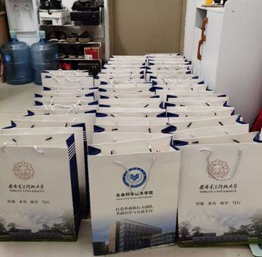 38份考研大礼包,每一份都承载着全院师生最真挚的期许与祝福。大礼包里包含一张贺卡和一份考试用具,考试用具大到文具袋,小至替换笔芯、橡皮擦……都是老师们精挑细选,寄托着对学生的深深关怀和期待。贺卡上印有西电生科院的标志,内容则是由本科生党支部成员书写,“提笔安天下,跨马定乾坤”、“前程似锦,来日方长”、“十年寒窗中破壁,锦绣前程自此辟”……贺卡上一句句暖心的话语,让同学们在这寒冷的冬天倍感温暖。
