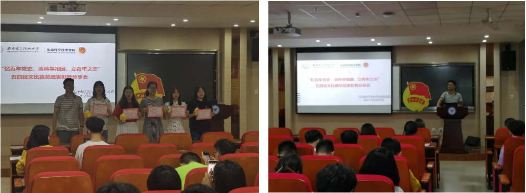 为深入学习贯彻习近平总书记在党史学习教育动员大会上的重要讲话精神,进一步积极落实学校、学院党史教育学习安排,在“五四运动”纪念日来临之际,37000cm威尼斯团委组织开展了“忆百年党史,谈科学报国,立青年之志”党史学习五四征文比赛,并于5月9日晚7点,在G420举行了总结表彰分享会。